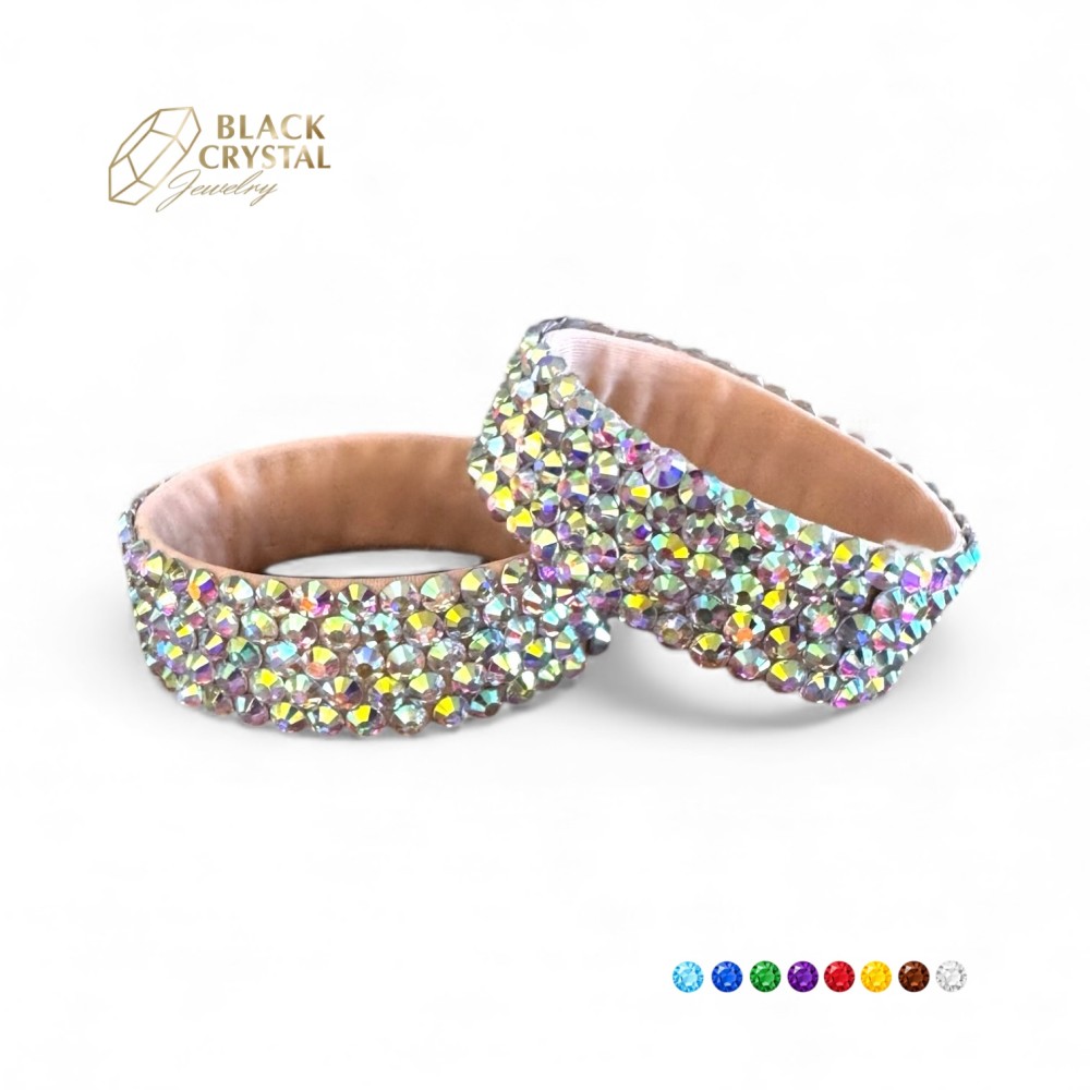 Powierzchnię bransoletki zdobi siedem równych rzędów kryształków / cyrkonii SS20, które pięknie odbijają światło i nadają biżuterii wyrazisty, sceniczny efekt. Dzięki elastycznej konstrukcji bransoletka nie ogranicza ruchów i doskonale sprawdza się podczas intensywnego tańca.
