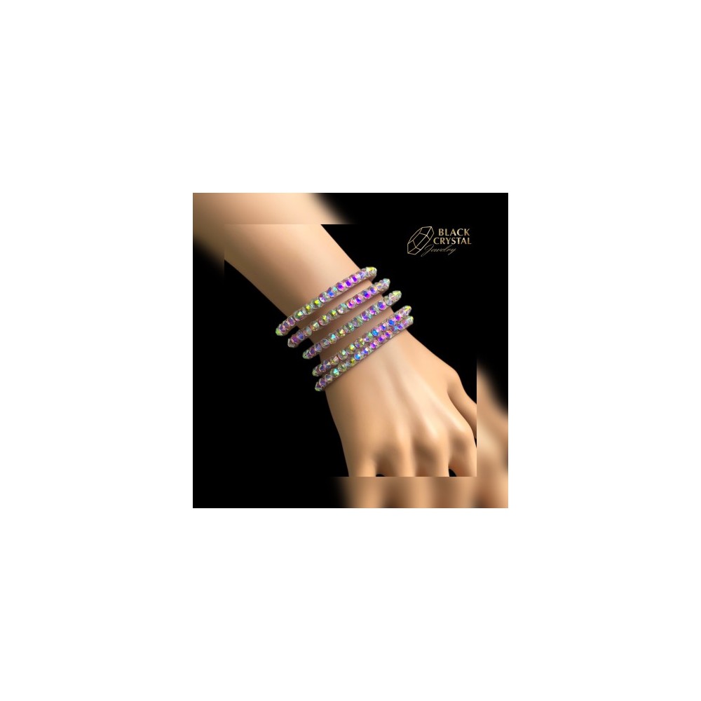 Bransoletka dostępna jest w różnych wersjach kolorystycznych i może być idealnie dopasowana do koloru sukienki lub kostiumu tanecznego dzięki zastosowaniu odpowiednich kamieni. Kryształki pięknie odbijają światło, tworząc efekt luksusowego połysku na scenie.