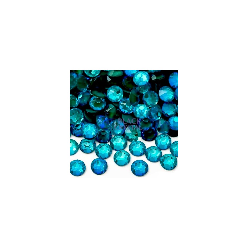 Cyrkonie Lumine Green Zircon o intensywnym, świetlistym połysku. Głęboki zielono-turkusowy kolor z efektem glow pięknie odbija światło, idealnie podkreślając stroje taneczne i sceniczne.