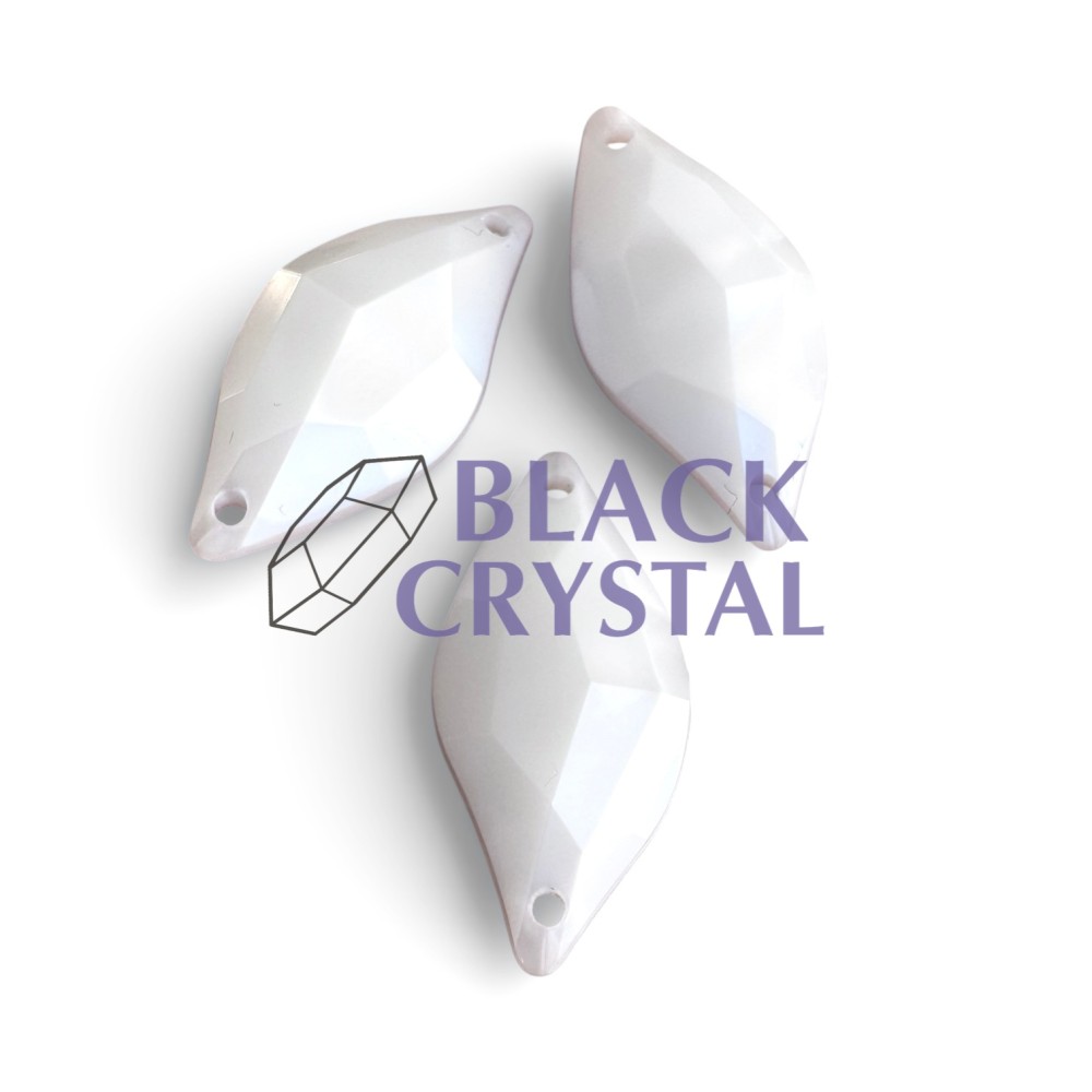 Białe kamienie akrylowe White Shine do przyszywania i klejenia okształcie listka o rozmiarze 12x25mm.