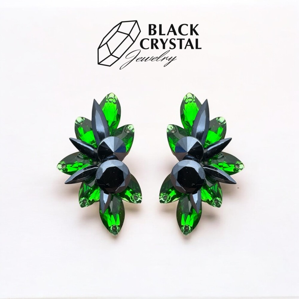 KOLCZYKI / KLIPSY - EMERALD/JET BLACK SHINE / 1 para