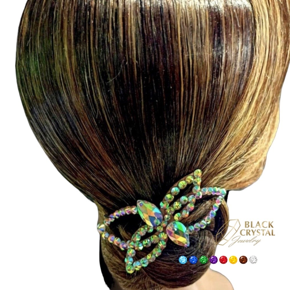 Turniejowa ozdoba do włosów dla tancerek, wykonana z efektownych kryształków, cyrkonii oraz dżetów. Błyszcząca forma doskonale podkreśla fryzurę sceniczną i nadaje jej wyrazistości na parkiecie.